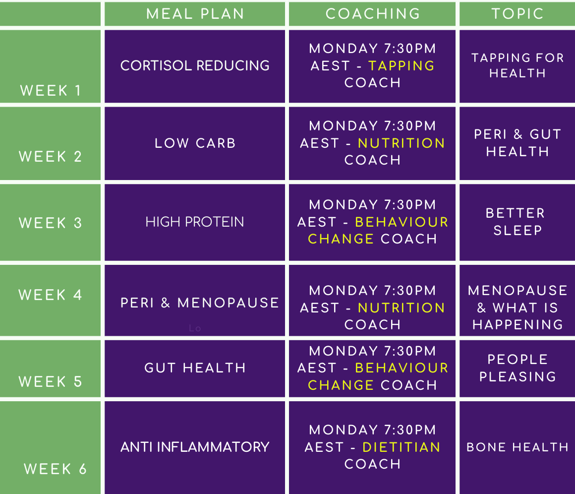 - You will receive a holistic and 6 Week IN DEPTH health program with WEEKLY customisable menus and coaching