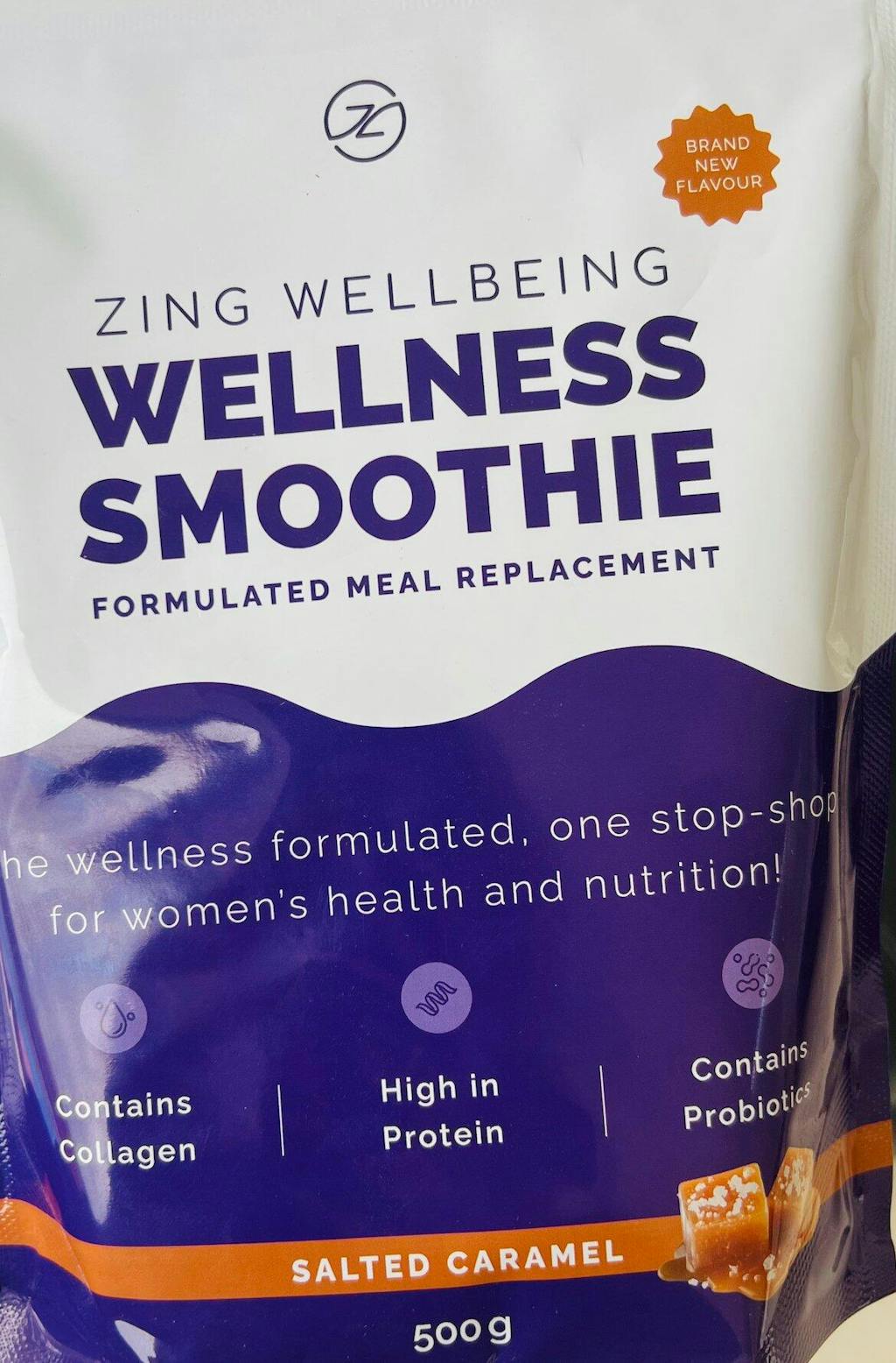 Introducing the new and LIMITED EDITION Salted Caramel Zing Wellbeing Wellness Smoothie flavour (aka Gut Loving Wellness Smoothie) 500g bag